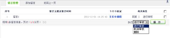 3.在“在留言列表”,設置留言的SEO配置、修改、回復、是否審核,刪除等操作。