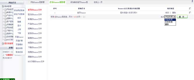 在欄目列表中選擇欄目所屬Banner圖,對其修改、添加、開始共用、刪除操作。