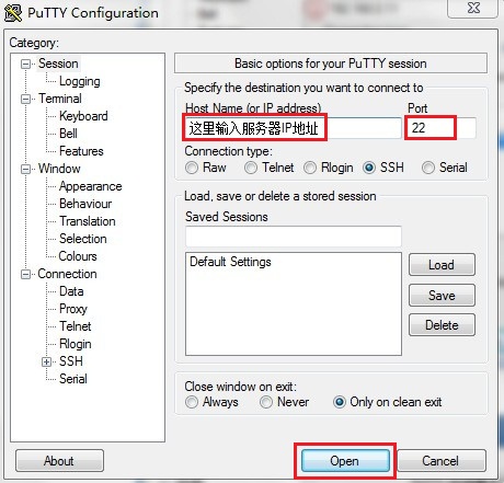 下載完成后,打開軟件,分別輸入IP地址,端口默認是22,如有修改端口,請對應填寫,點擊打開,如圖1-4所示: