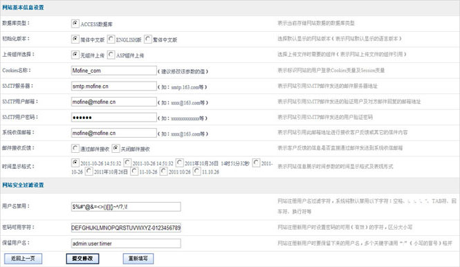 5.SMTP用戶郵箱:(如:mofine @ mofine.com等) 表示網(wǎng)站引用SMTP郵件發(fā)送的驗證用戶及對方郵件回復(fù)的郵箱地址。